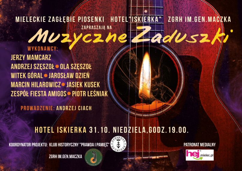 Po ubiegłorocznej przerwie do Mielca powracają Muzyczne Zaduszki. Na scenie zaprezentują się wyjątkowi mieleccy artyści na czele z Jerzym Mamcarzem. Wystąpi Andrzej Szęszoł, Ola Szęszoł, Witek Góral, Jarosław Dzień, Marcin Hilarowicz, Jasiek Kusek Piotr Leśniak oraz zespół Fiesta Amigos. Koncert poprowadzi Andrzej Ciach.