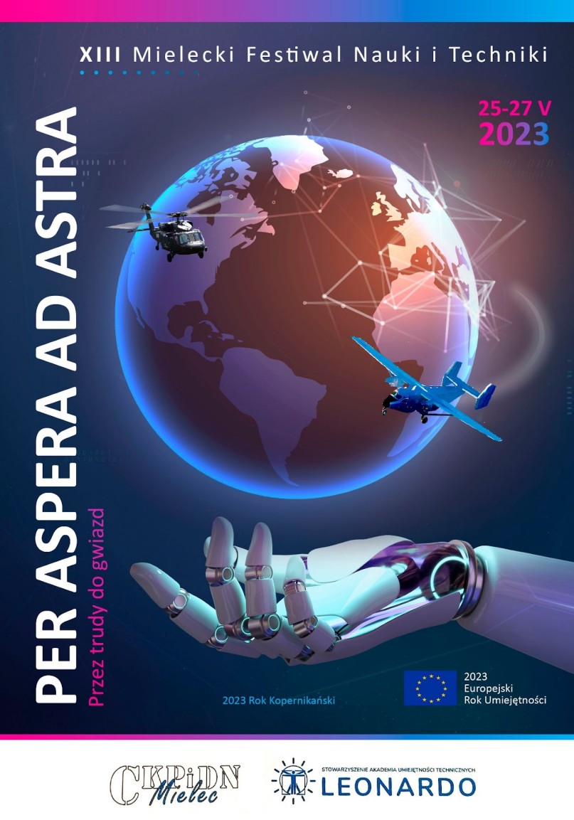 XIII Mielecki Festiwal Nauki i Techniki odbędzie się w dniach 25-27 maja 2023 roku. Rokrocznie motywem przewodnim Festiwalu jest ceniona przez środowisko lotnicze sentencja łacińska „Per aspera ad astra”, czyli „Przez trudy do gwiazd”. Marzenia, pasje odkrywania, innowacyjne i kreatywne zainteresowania oraz świadomość ciężkiej pracy to podstawowe atrybuty, które prowadzą dzieci i młodzież do sukcesu osobistego i zawodowego.