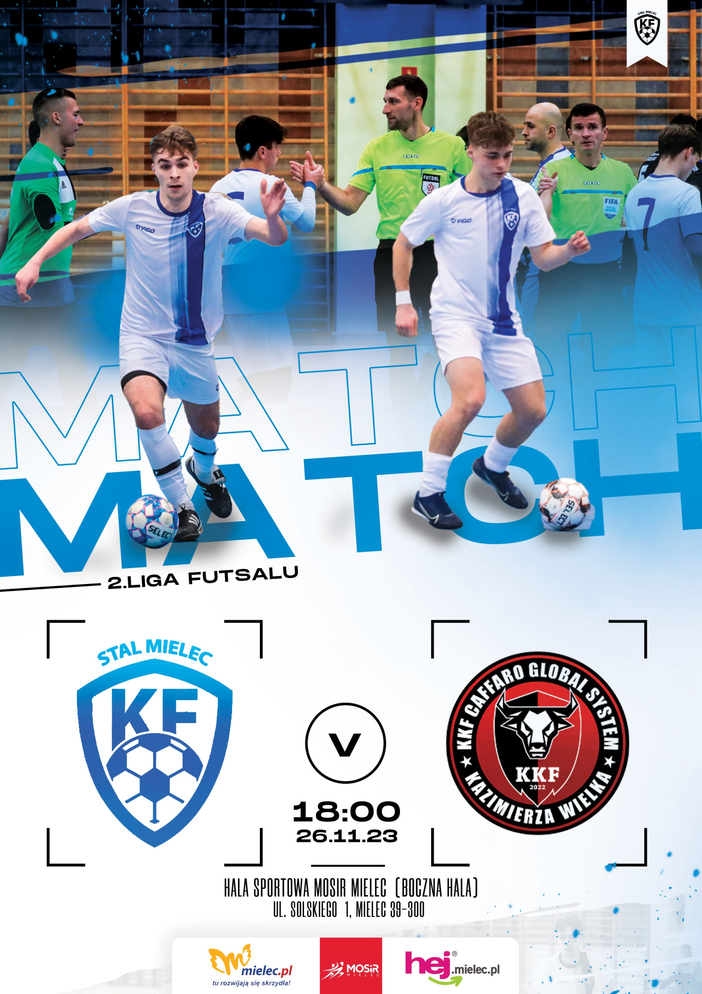 Mecz 2 ligi futsalu KF Stal Mielec - Caffaro Global System Kazimierza Wielka odbędzie się w niedzielę 26 listopada o godzinie 18:00 w sali bocznej nowej hali sportowej MOSiR Mielec. Główna arena nie jest dostępna ze względu na przygotowania do poniedziałkowego meczu ekstraklasy siatkarek. Niestety, nie udało się już przenieść tego meczu na inny termin.