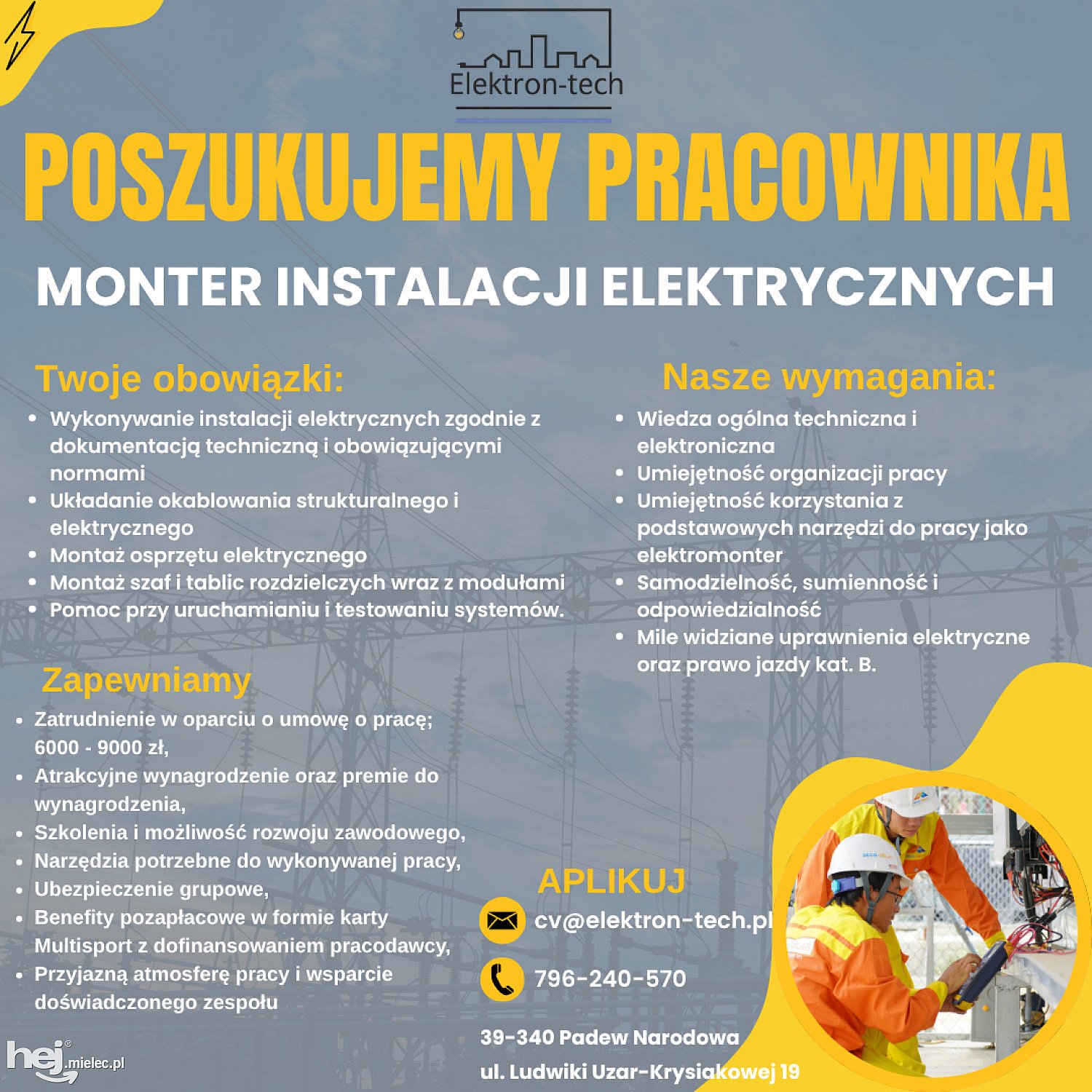 Poszukiwany pracownik na stanowisko "Elektromonter instalacji elektrycznych"