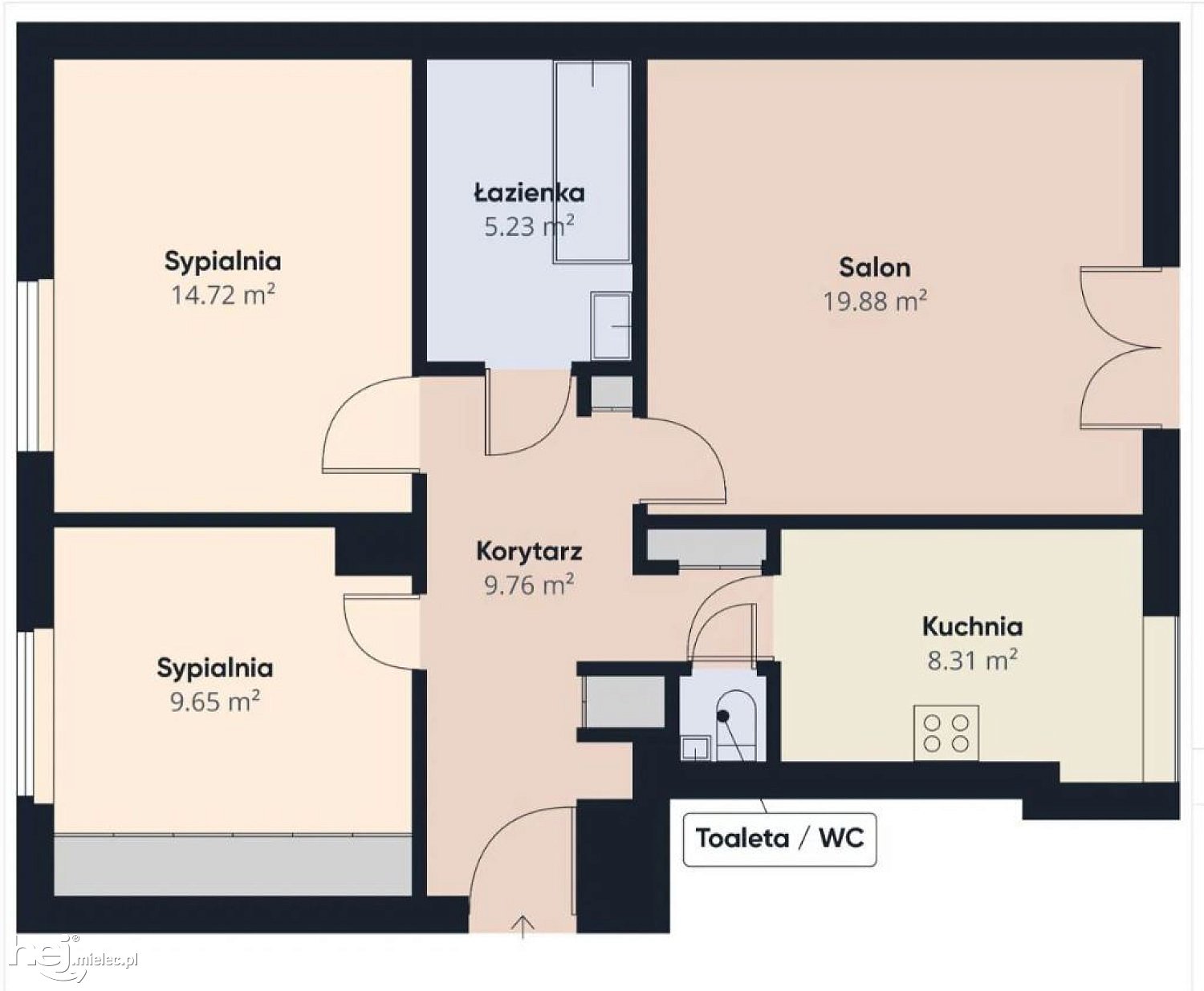 -Mieszkanie o bardzo dobrym układzie pomieszczeń,ustawne i przestronne,wszystkie pokoje w kwadracie,co umożliwia łatwość aranżacji i poczucie przestrzeni oraz innych adaptacji mieszkania do bierzących potrzeb: