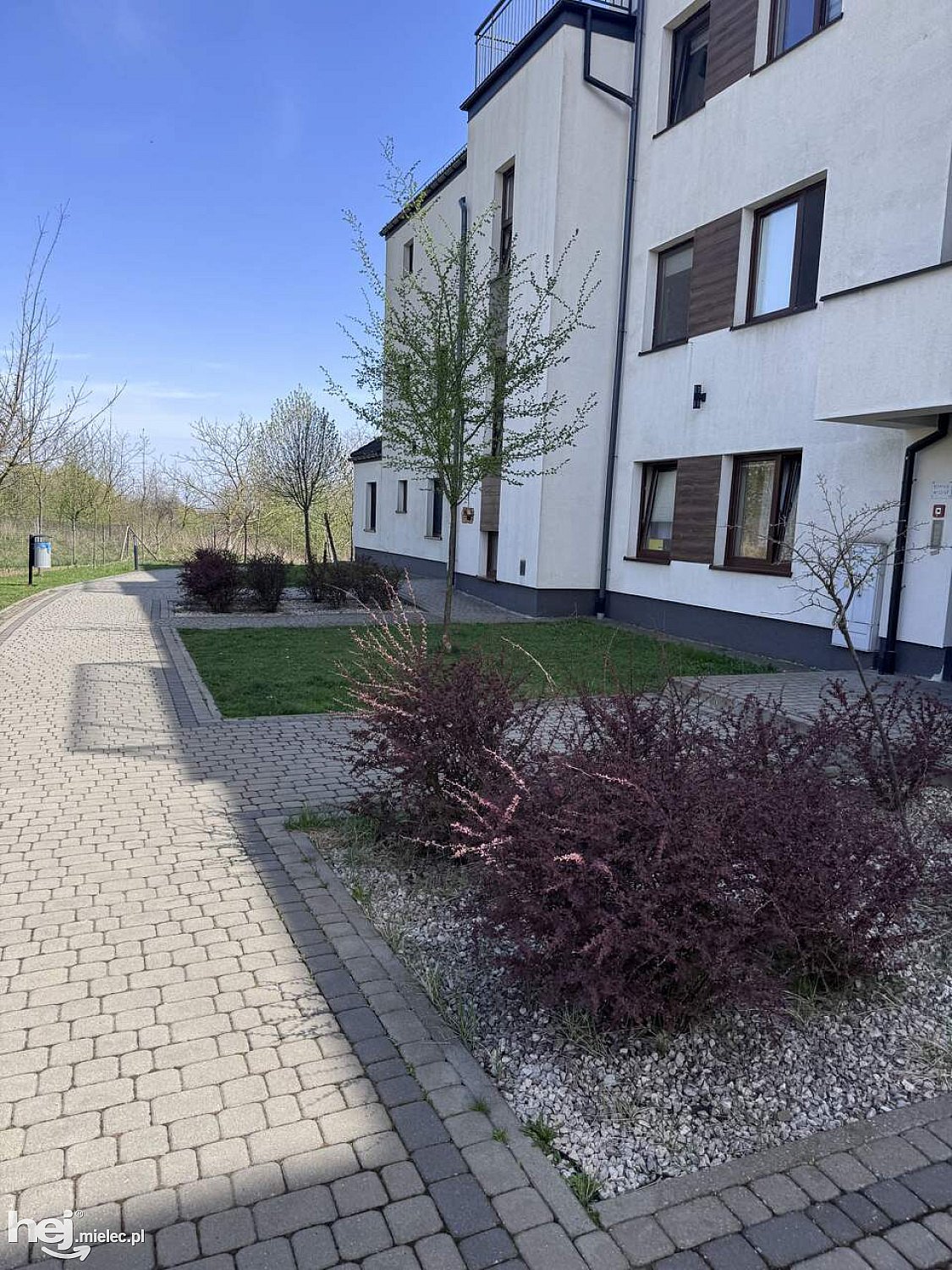 * bezpośrednio przy bloku dużo zieleni do spaceru z psem np.