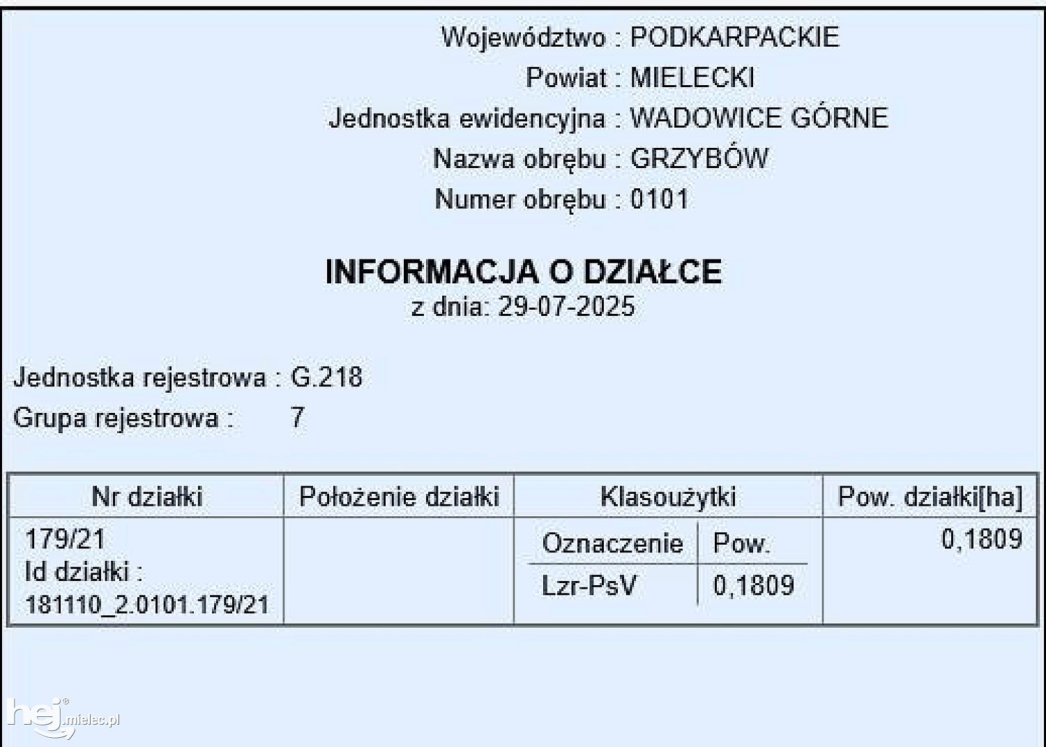 🏡Sprzedam działkę budowlaną o powierzchni 0,1809 ha. w miejscowości Grzybów