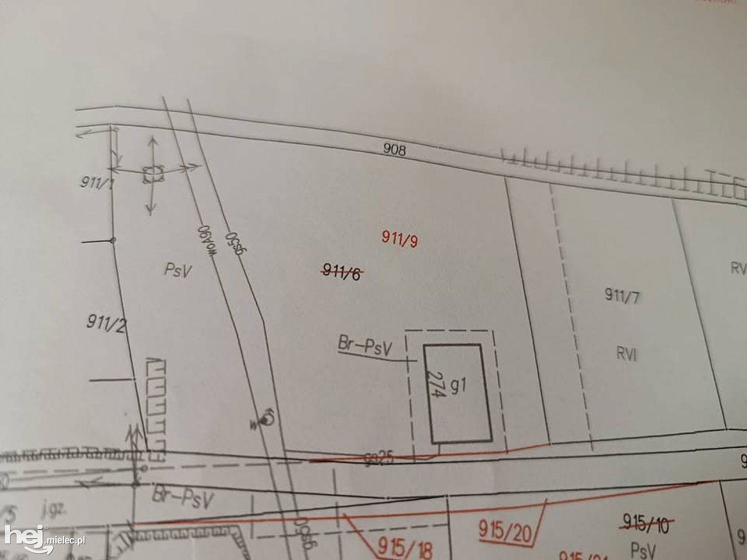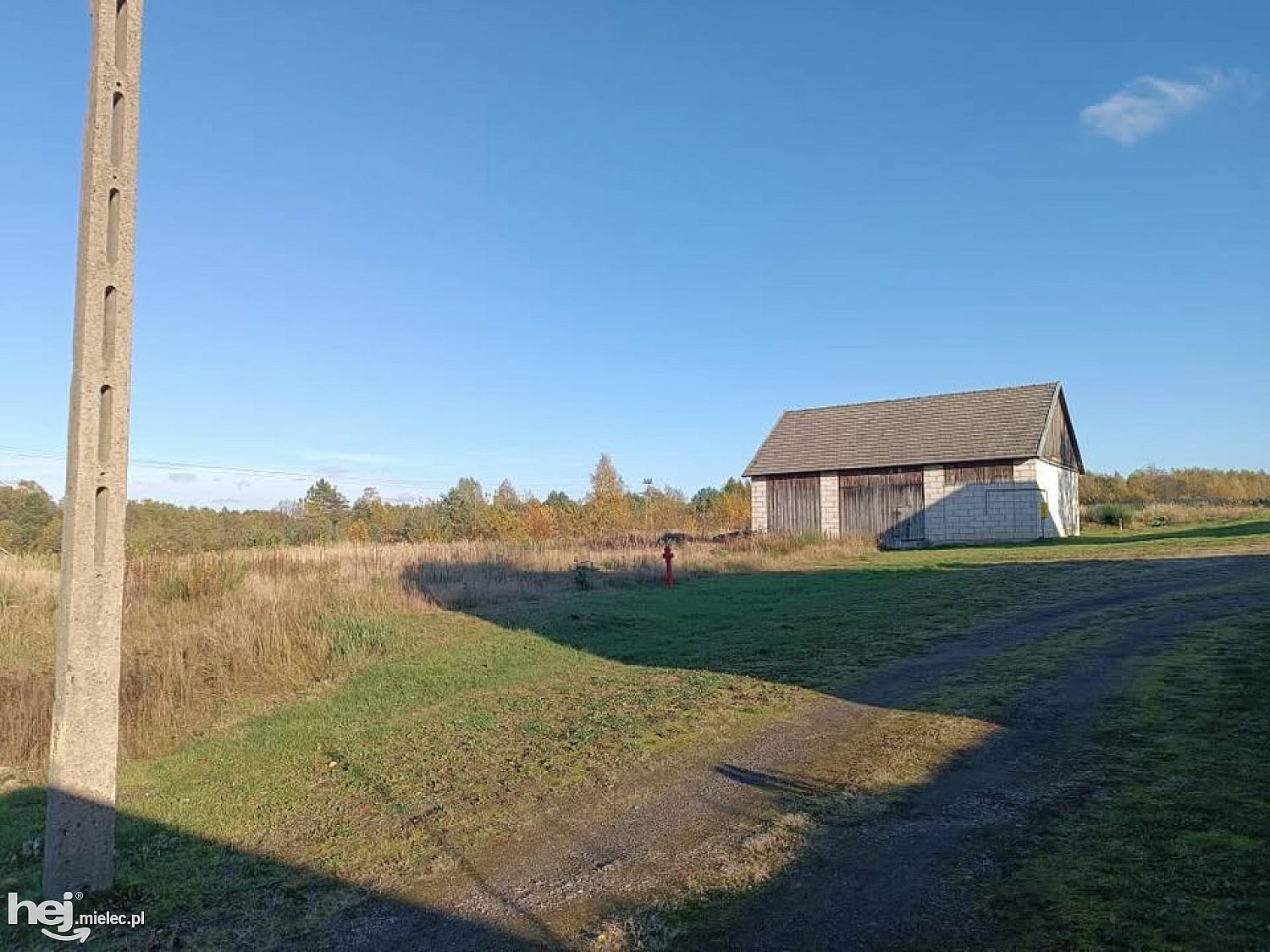 W rogu działki znajduje się słup wysokiego napięcia, hydrant przeciwpożarowy.