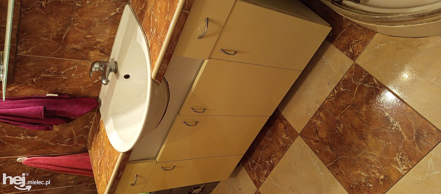 Mam do sprzedania kabinę prysznicową w bardzo dobrym stanie wraz z brodzikiem i baterią (wysokość wraz z brodzikiem 200cm) oraz szafkę łazienkową z umywalką (wysokość szafki 80cm, długość 105cm).