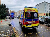 Do potrącenia dwóch funkcjonariuszek Policji doszło na przejściu dla pieszych na ul. Żeromskiego - przy Komendzie Powiatowej Policji w Mielcu. Kobiety trafiły do szpitala. 14 listopada 2023 r.