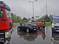 Woda deszczowa zaczęła wdzierać się do boksów dla psów na terenie mieleckiego schroniska dla zwierząt. Strażacy starają się wodę wypompować. 21 maja 2019