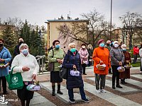 Wierni Kościoła katolickiego zebrali się w świątyniach na Liturgii Światła i Wigilii Paschalnej tym samym rozpoczynając Święta Wielkiej Nocy. Obecnych w świątyniach było zdecydowanie mniej, niż każdego roku - ze względu na obostrzenia związane z pandemią koronawirusa. Na zdjęciach Liturgia Światła w Kościele pw. MBNP w Mielcu. 3 kwietnia 2021 r.