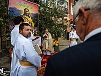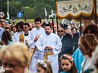 Wierni z parafii pw. MBNP w Mielcu przeszli ulicami centrum miasta w procesji z okazji Bożego Ciała. 8 czerwca 2023 r.