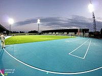 Piłkarze drugoligowej Stali Mielec we wtorek 27 sierpnia 2013 r. po raz drugi wyszli na murawę stadionu po jego kompleksowej przebudowie, ale pierwszy raz przy sztucznym oświetleniu. Przez około 30 minut trener Włodzimierz Gąsior prowadził lekki trening z zawodnikami. Piłkarze przygotowują się już do sobotniego meczu z Wigrami Suwałki 30 sierpnia. To będzie pierwszy mecz na odnowionym stadionie. Fot. ks
