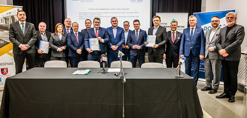W poniedziałek, 8 grudnia 2025 roku, w Domu Kultury Gminy Wadowice Górne, doszło do uroczystego podpisania dwóch kluczowych umów dotyczących opracowania koncepcji infrastruktury drogowej powiatu mieleckiego. Wydarzeniu towarzyszył Sekretarz Stanu – Pełnomocnik Rządu ds. wykluczenia komunikacyjnego Minister Stanisław Bukowiec, a wśród uczestników znaleźli się samorządowcy z całego regionu, pracownicy zarządów dróg oraz radni.